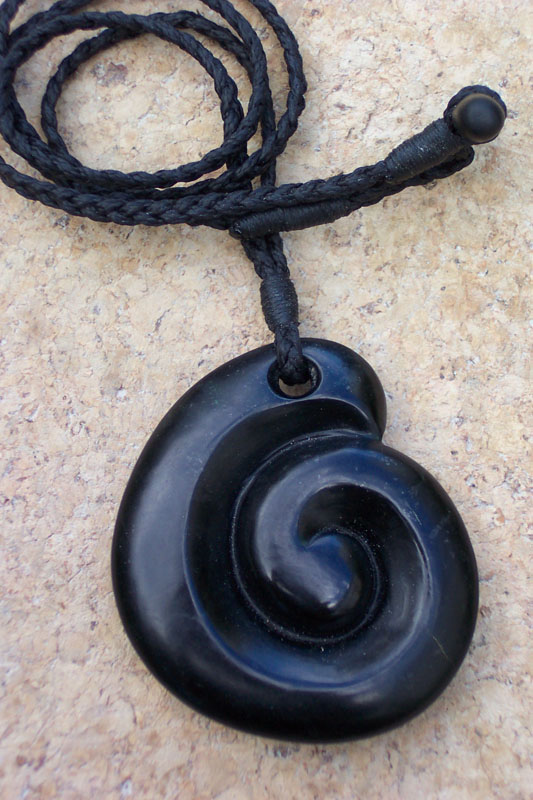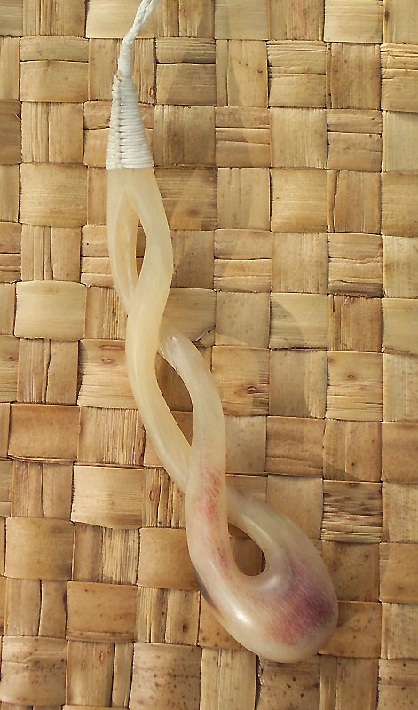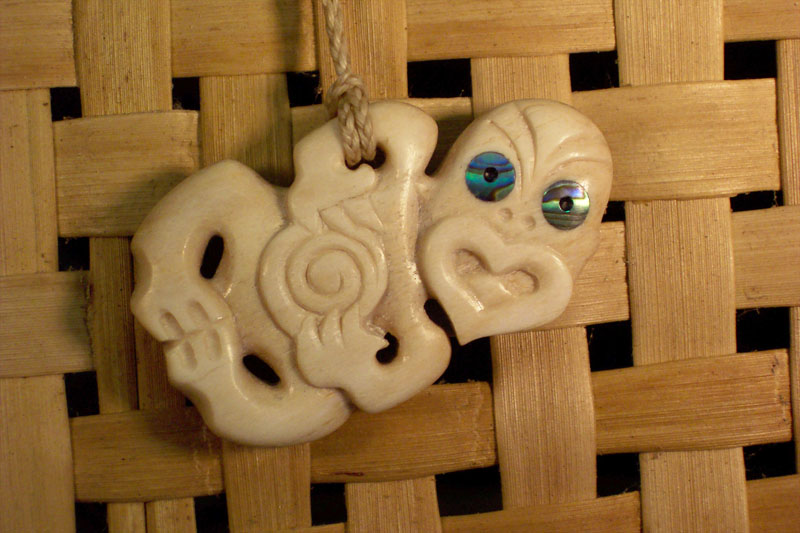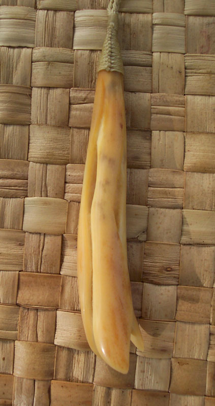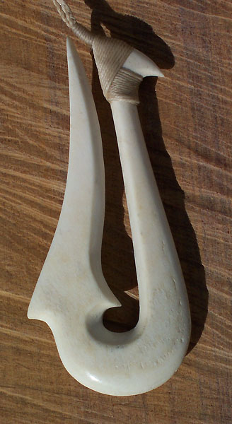 Ian works in a broad range of materials including beefbone, whalebone and teeth, petrified mammoth bone, dugong (a large marine mammal) bone, ebony, shell, horns and stone. His styles cross a broad range being influenced by Maori, Celtic, African and contempory design. All his work is of top quality finish and he specialises in carving to order with original designs.
